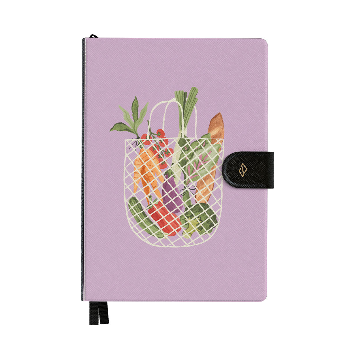 日付が書かれていないミニマリストなデザインで、手帳・スケジュール帳・ダイアリーとして使えます。表紙のハードカバーには、心地よい手触りのヴィーガンサフィアーノレザーを使用。スリムな磁気べえると付きの頑丈な手帳で、コーヒーをこぼしたり、うっかり手帳を落としたりしても安心です。