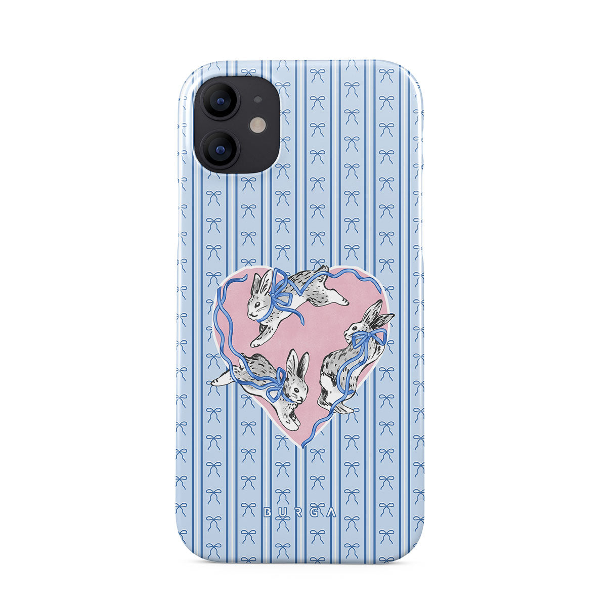 このデザインの特徴白ウサギ、ハート型フレーム、青いストライプ