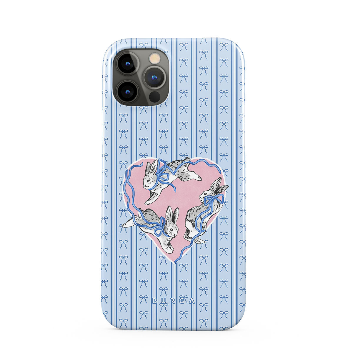 このデザインの特徴白ウサギ、ハート型フレーム、青いストライプ