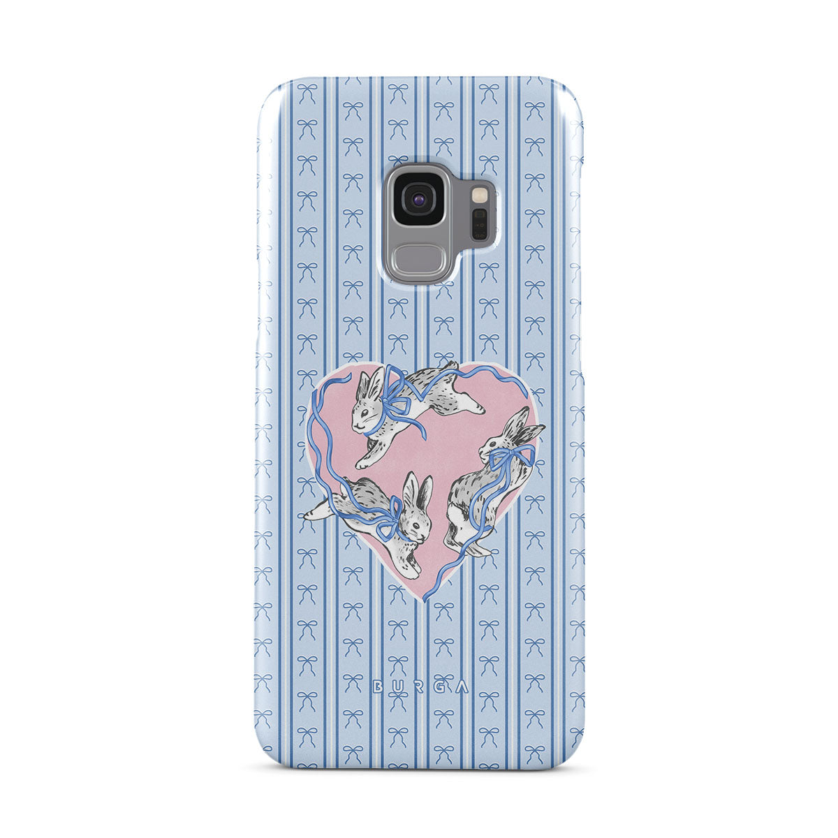 このデザインの特徴白ウサギ、ハート型フレーム、青いストライプ