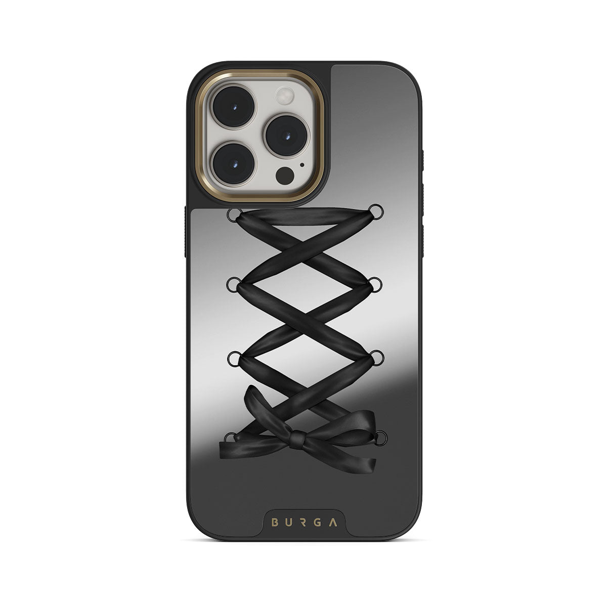 このデザインの特徴は、黒いリボン、格子模様、鏡のような仕上がり。