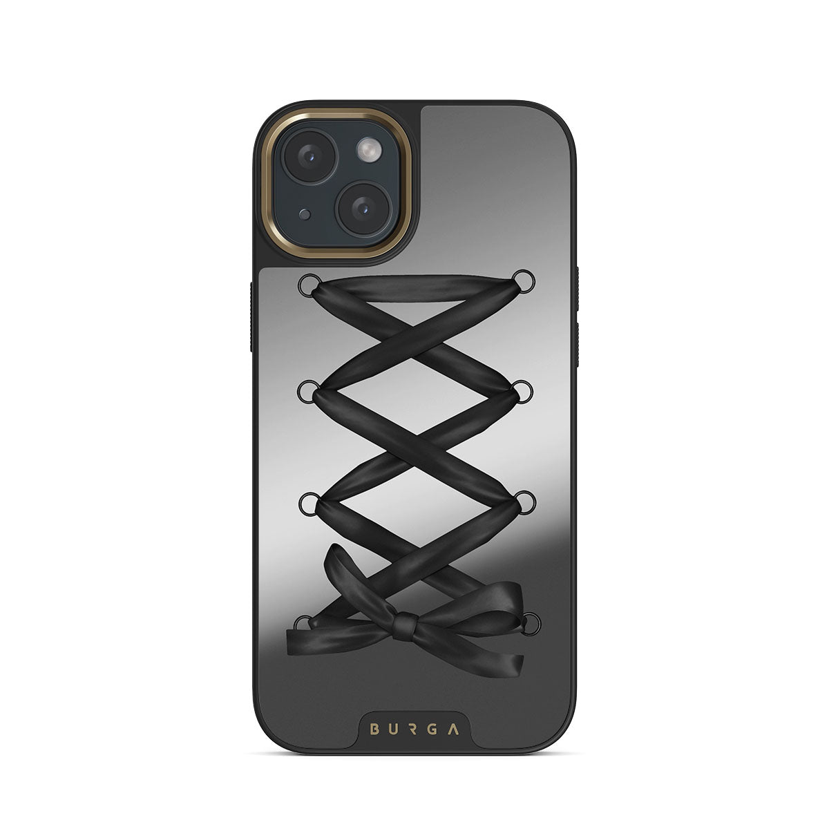 このデザインの特徴は、黒いリボン、格子模様、鏡のような仕上がり。