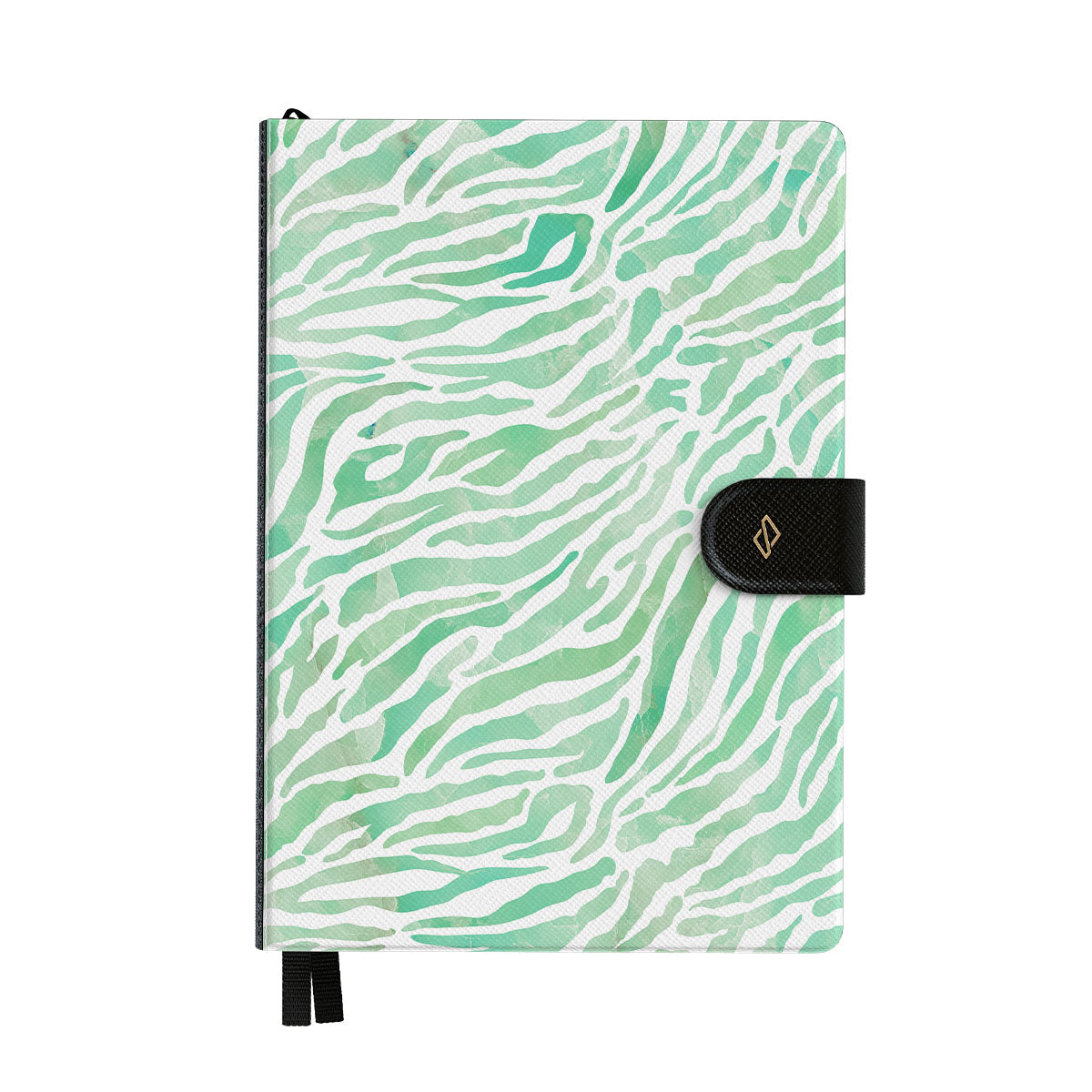 日付が書かれていないミニマリストなデザインで、手帳・スケジュール帳・ダイアリーとして使えます。表紙のハードカバーには、心地よい手触りのヴィーガンサフィアーノレザーを使用。スリムな磁気べえると付きの頑丈な手帳で、コーヒーをこぼしたり、うっかり手帳を落としたりしても安心です。