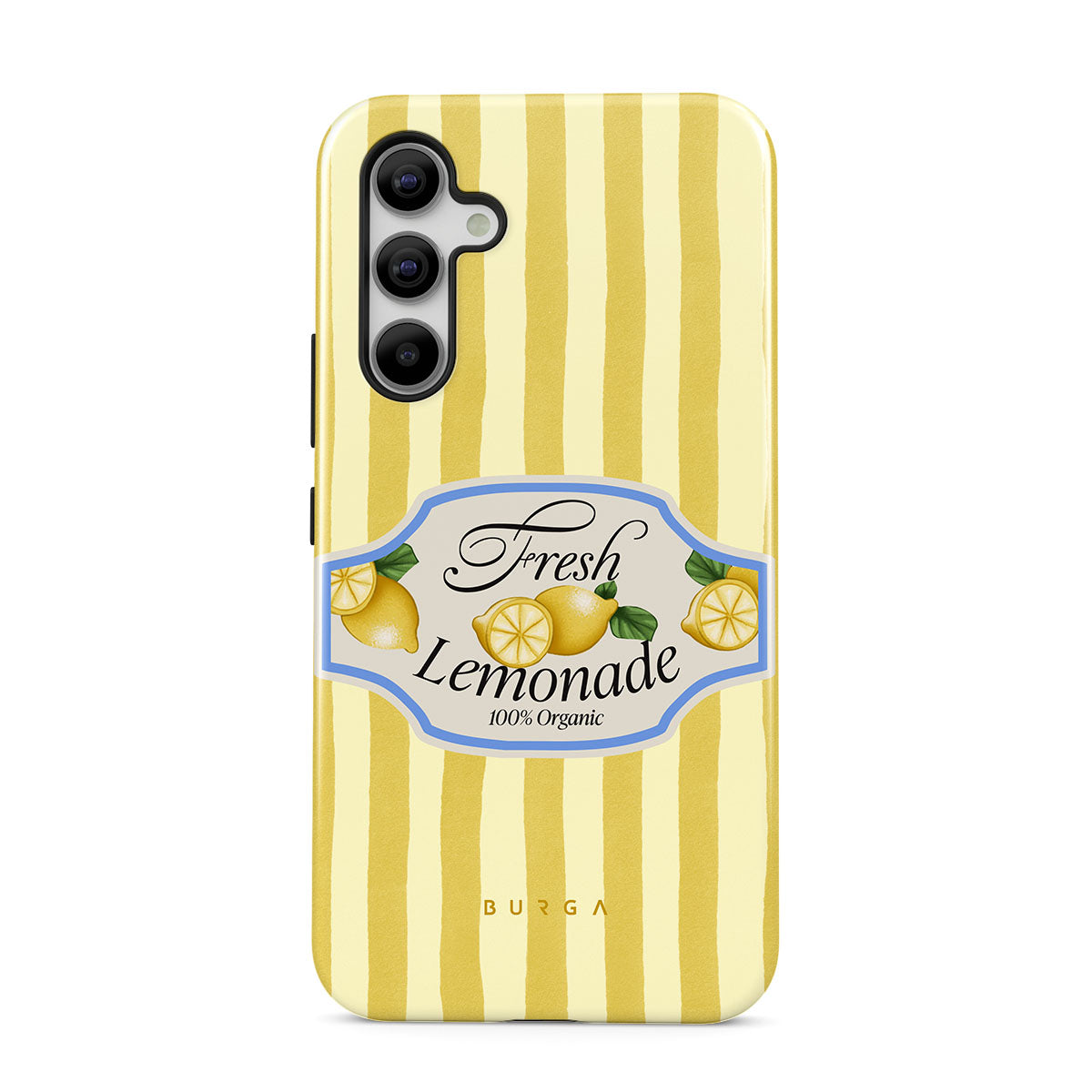 このデザインの特徴レモン、黄色のストライプ、遊び心のあるグラフィックが含まれています
