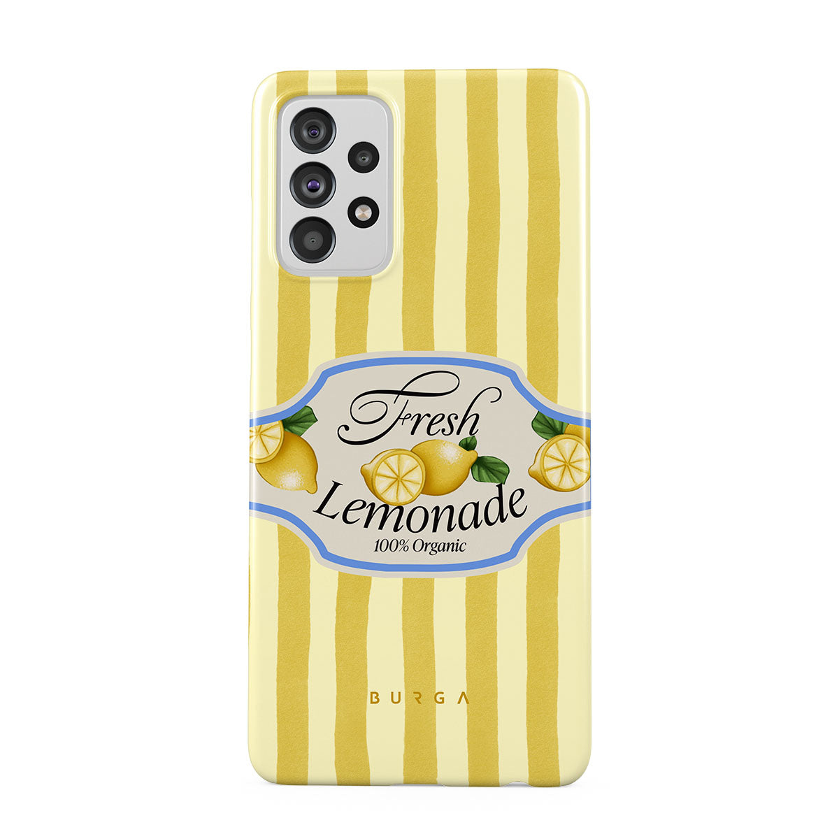 このデザインの特徴レモン、黄色のストライプ、遊び心のあるグラフィックが含まれています