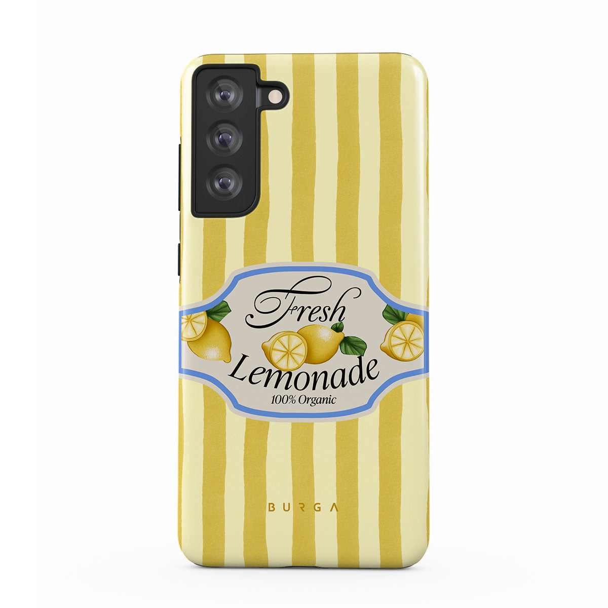 このデザインの特徴レモン、黄色のストライプ、遊び心のあるグラフィックが含まれています