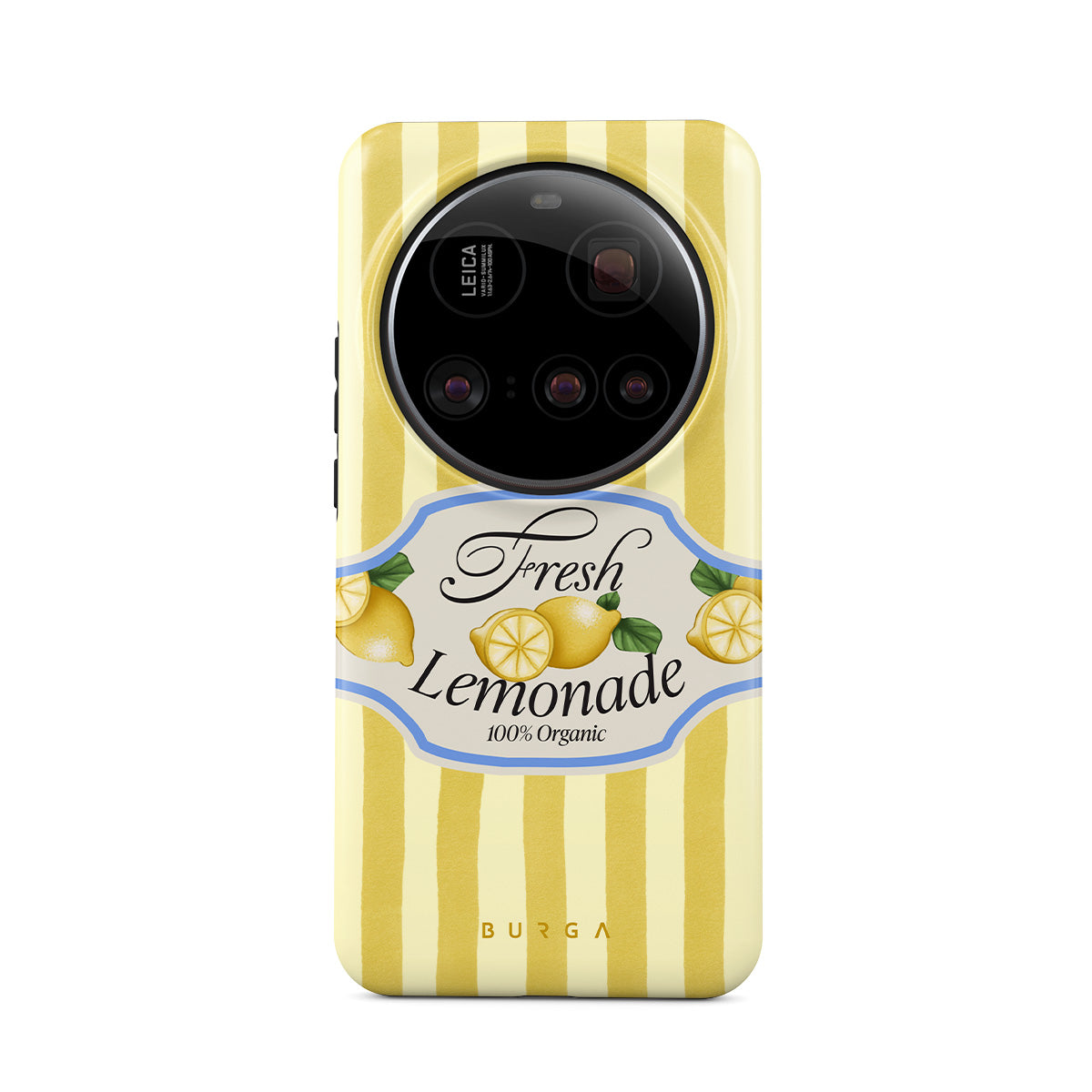 このデザインの特徴レモン、黄色のストライプ、遊び心のあるグラフィックが含まれています