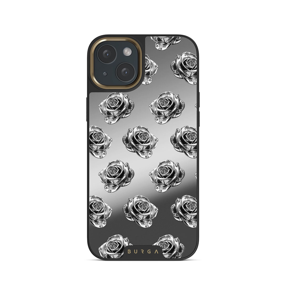 このデザインの特徴バラ、シルバー、メタル、花、ミラーが含まれています