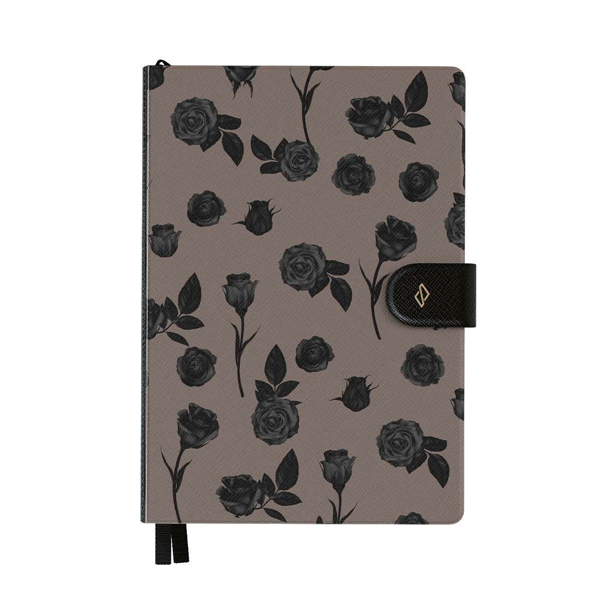 日付が書かれていないミニマリストなデザインで、手帳・スケジュール帳・ダイアリーとして使えます。表紙のハードカバーには、心地よい手触りのヴィーガンサフィアーノレザーを使用。スリムな磁気べえると付きの頑丈な手帳で、コーヒーをこぼしたり、うっかり手帳を落としたりしても安心です。