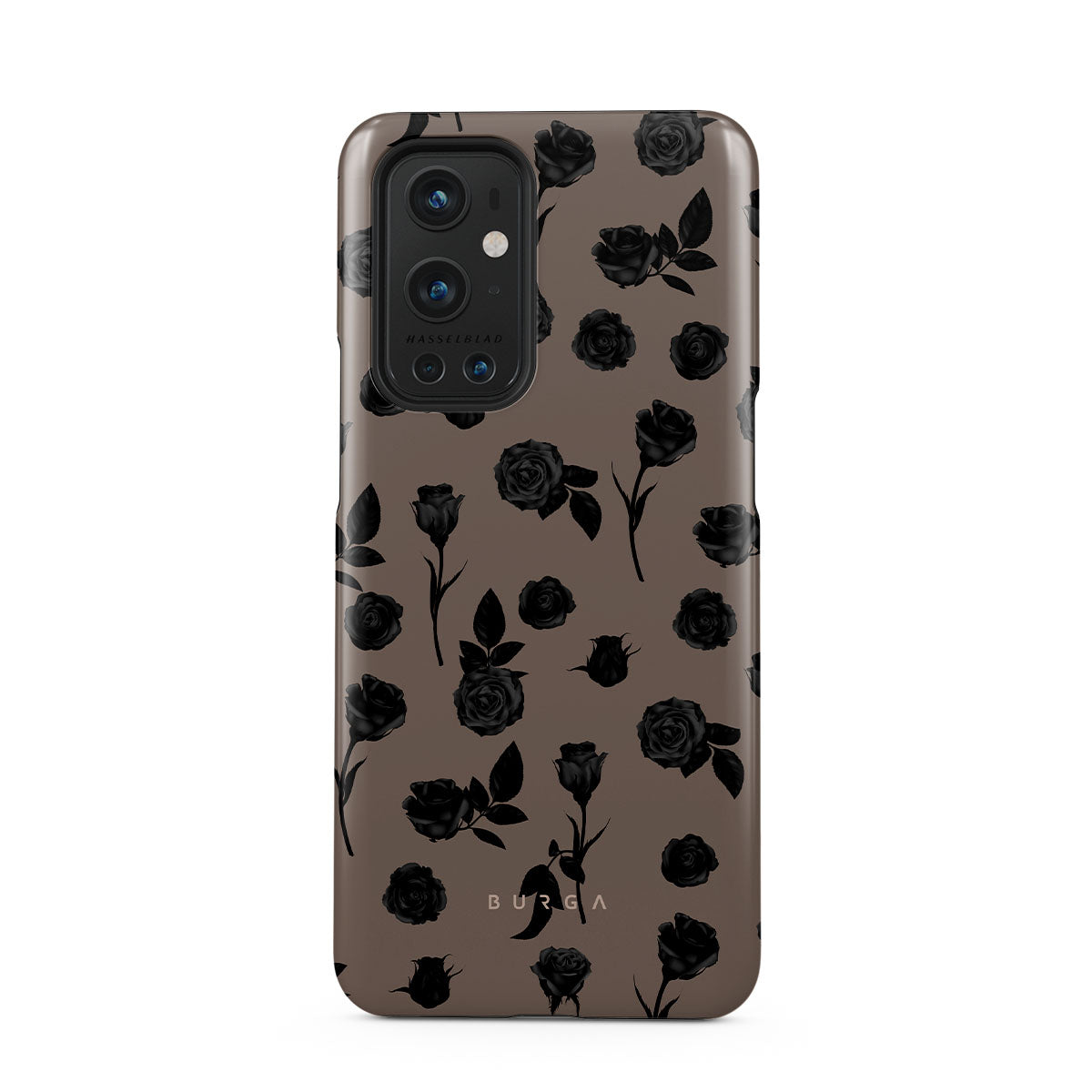 このデザインの特徴は、黒いバラ、大地の色調、フローラルディテール、ダークな花々。