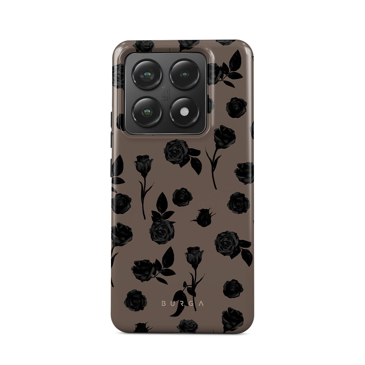 このデザインの特徴は、黒いバラ、大地の色調、フローラルディテール、ダークな花々。
