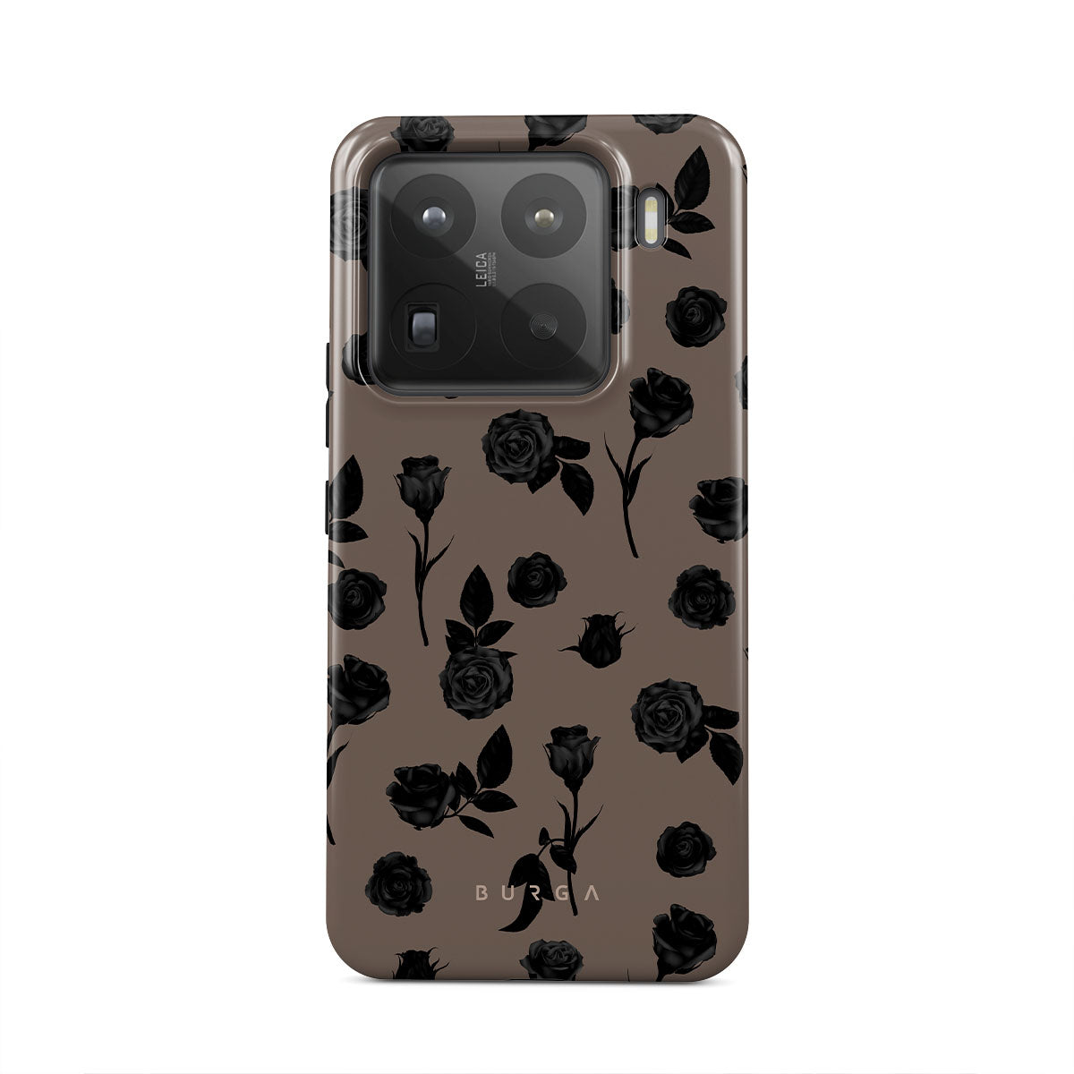 このデザインの特徴は、黒いバラ、大地の色調、フローラルディテール、ダークな花々。