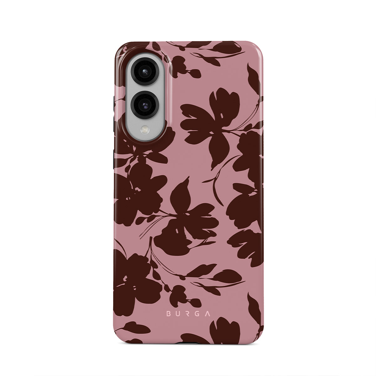 このデザインの特徴:抽象的な茶色の花、ピンクの背景