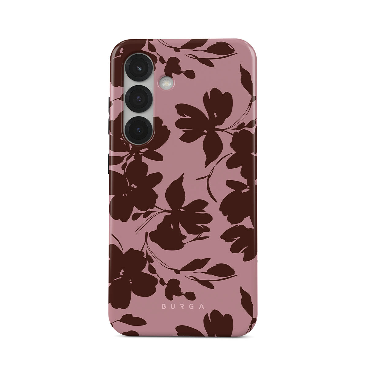 このデザインの特徴:抽象的な茶色の花、ピンクの背景