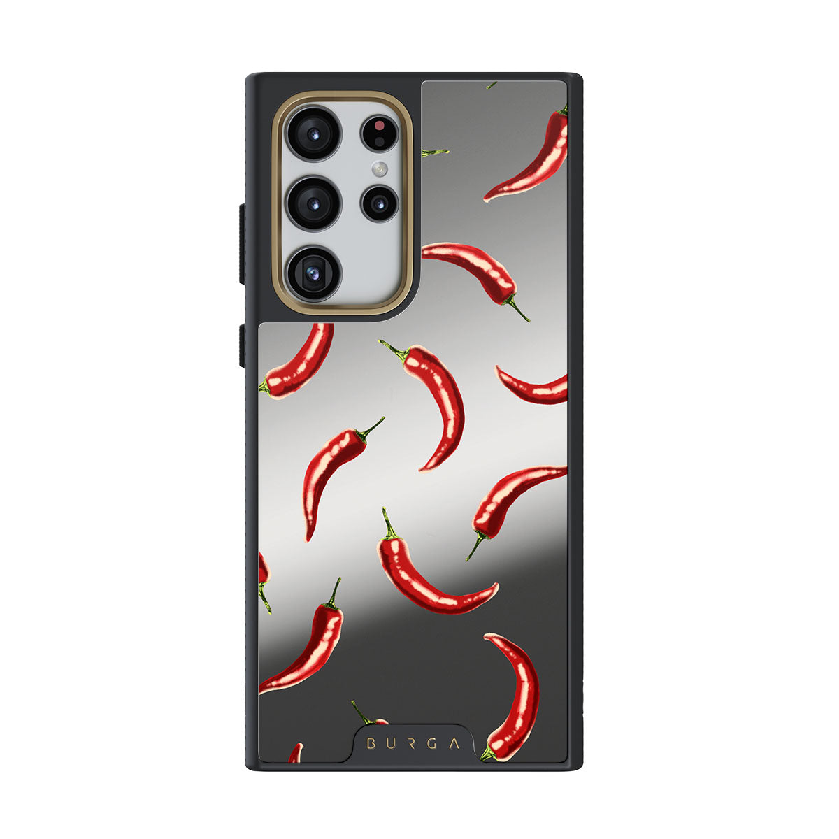 このデザインの特徴チリペッパー、スパイシーフード、赤いペッパー、ミラーが含まれています