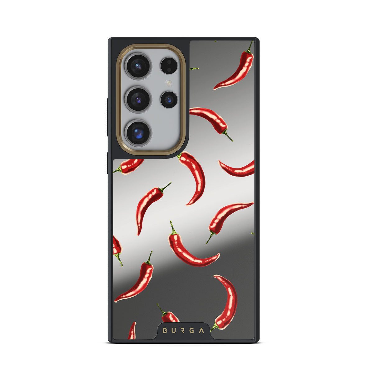 このデザインの特徴チリペッパー、スパイシーフード、赤いペッパー、ミラーが含まれています