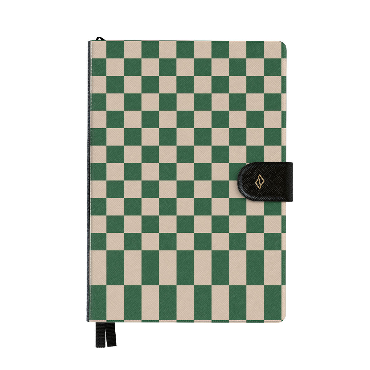 日付が書かれていないミニマリストなデザインで、手帳・スケジュール帳・ダイアリーとして使えます。表紙のハードカバーには、心地よい手触りのヴィーガンサフィアーノレザーを使用。スリムな磁気べえると付きの頑丈な手帳で、コーヒーをこぼしたり、うっかり手帳を落としたりしても安心です。