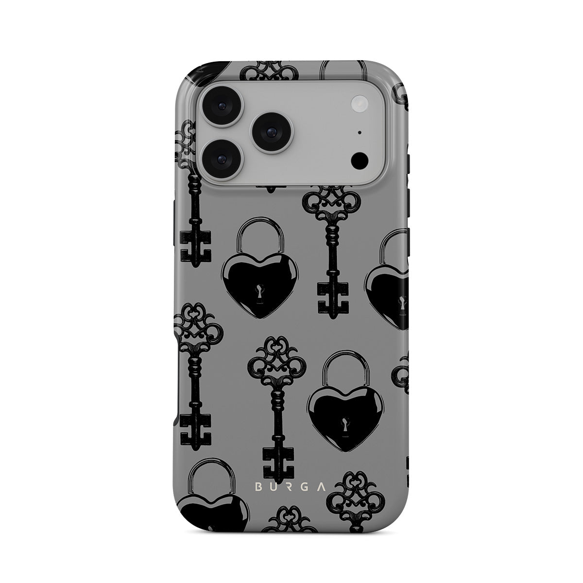 このデザインの特徴は、装飾が施された南京錠、ヴィンテージな鍵、ブラックのディテール。