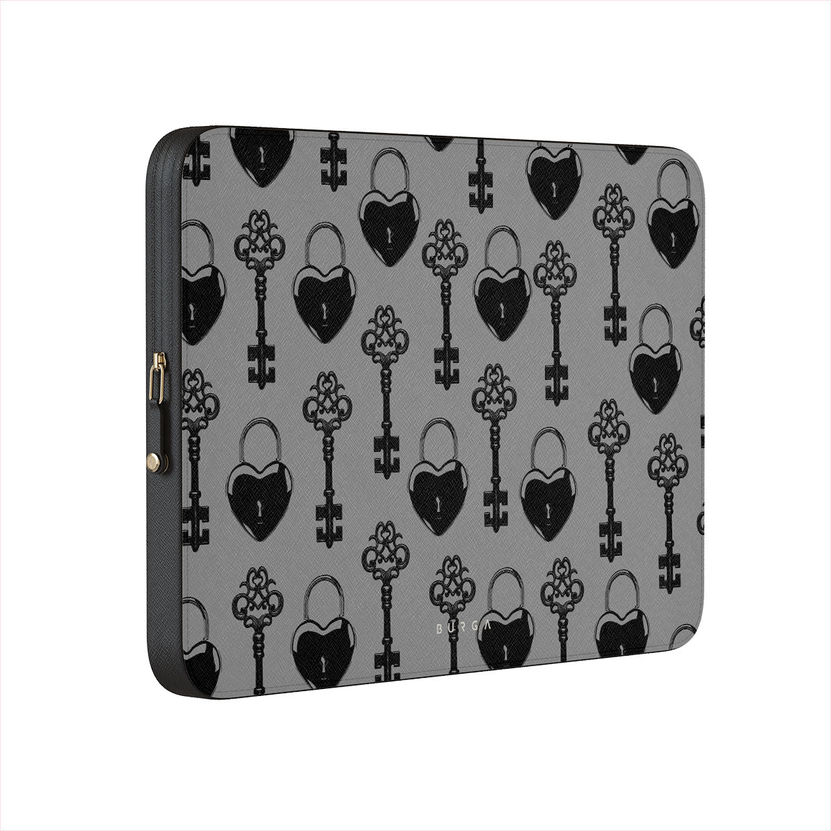 このデザインの特徴は、装飾が施された南京錠、ヴィンテージな鍵、ブラックのディテール。