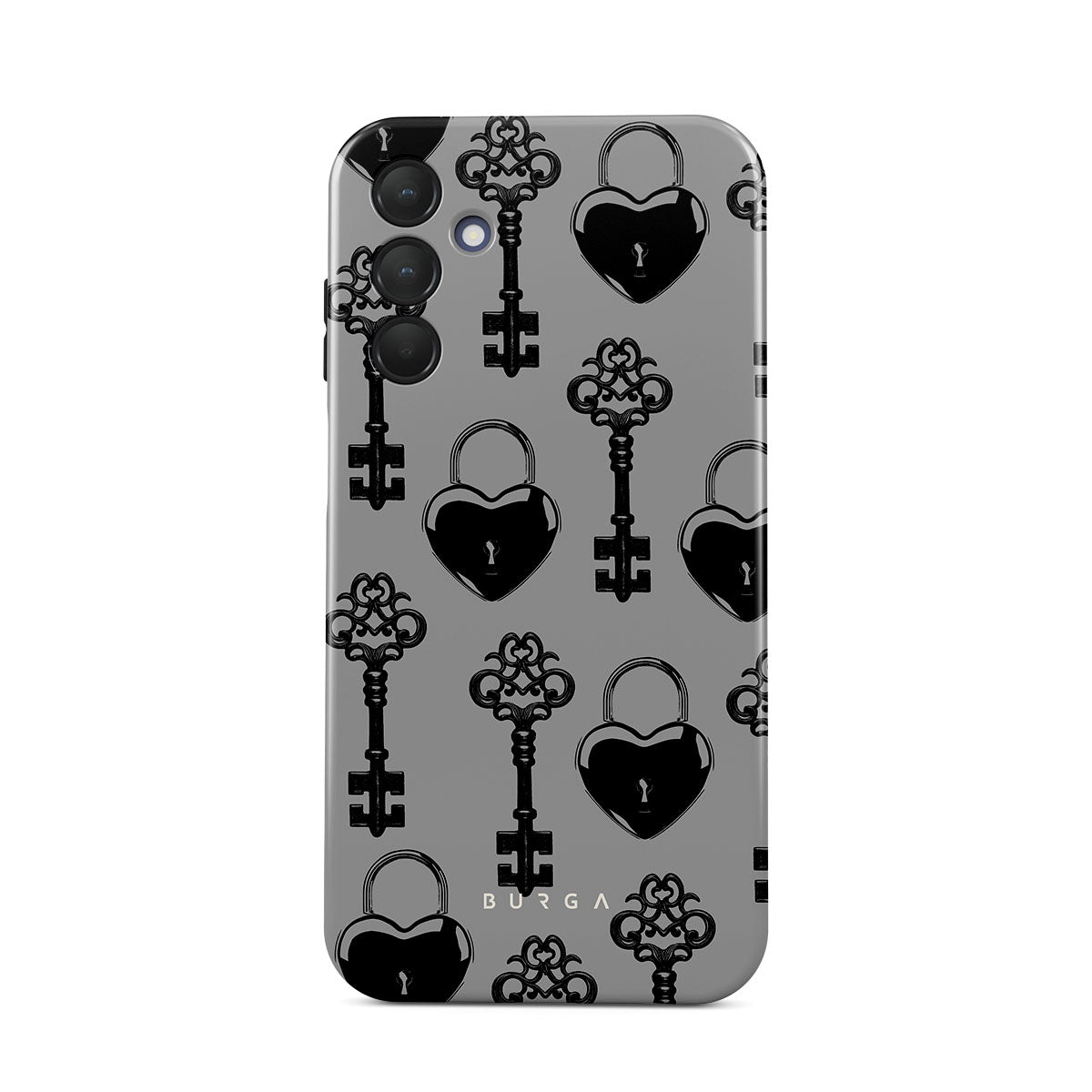 このデザインの特徴は、装飾が施された南京錠、ヴィンテージな鍵、ブラックのディテール。