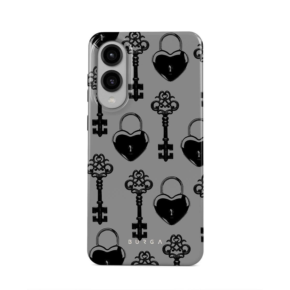 このデザインの特徴は、装飾が施された南京錠、ヴィンテージな鍵、ブラックのディテール。
