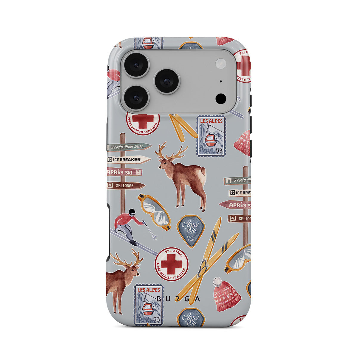 このデザインの特徴:ヴィンテージのスキーポスターレトロなスキーリゾート、トナカイのイラスト、スキーリフトデザイン、アルプスのパターン、冬のスポーツ、クラシックなスキー小屋スタイル、山のリゾートグラフィックス