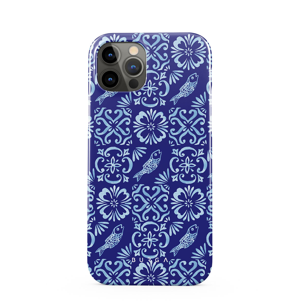 このデザインの特徴:ポルトガルのタイル模様、深い青、花柄、花、魚