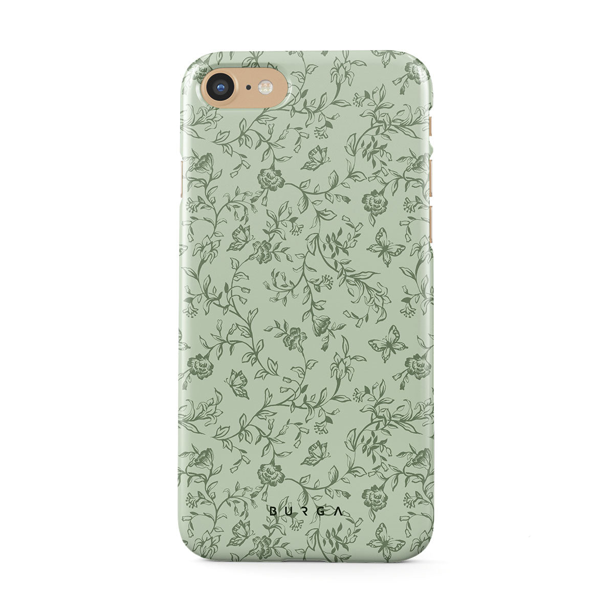 このデザインの特徴緑のフローラルパターン、花、蝶