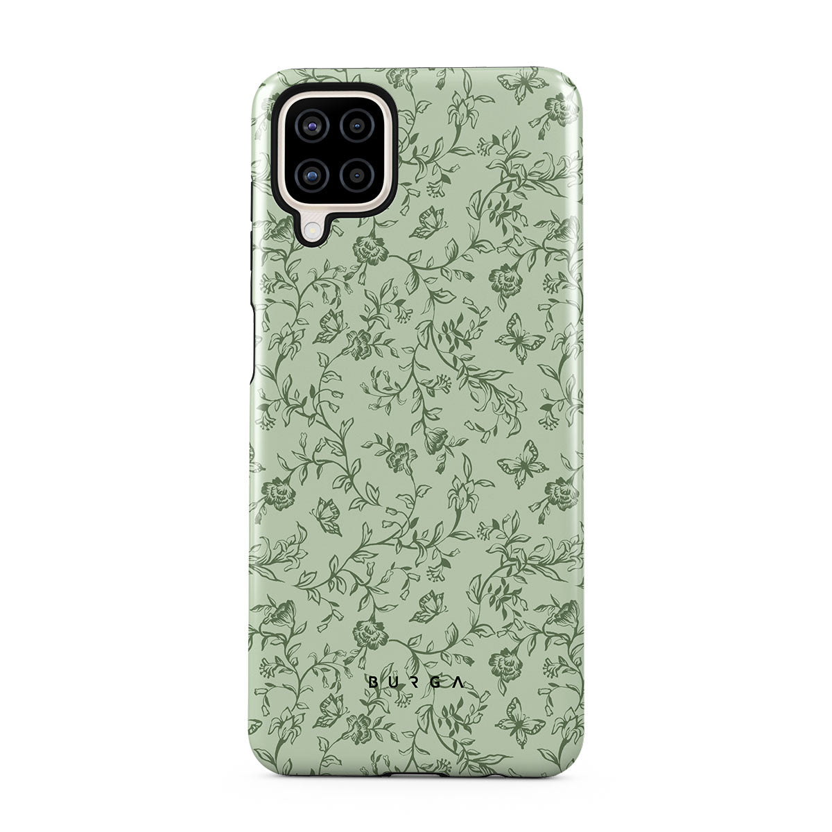 このデザインの特徴緑のフローラルパターン、花、蝶