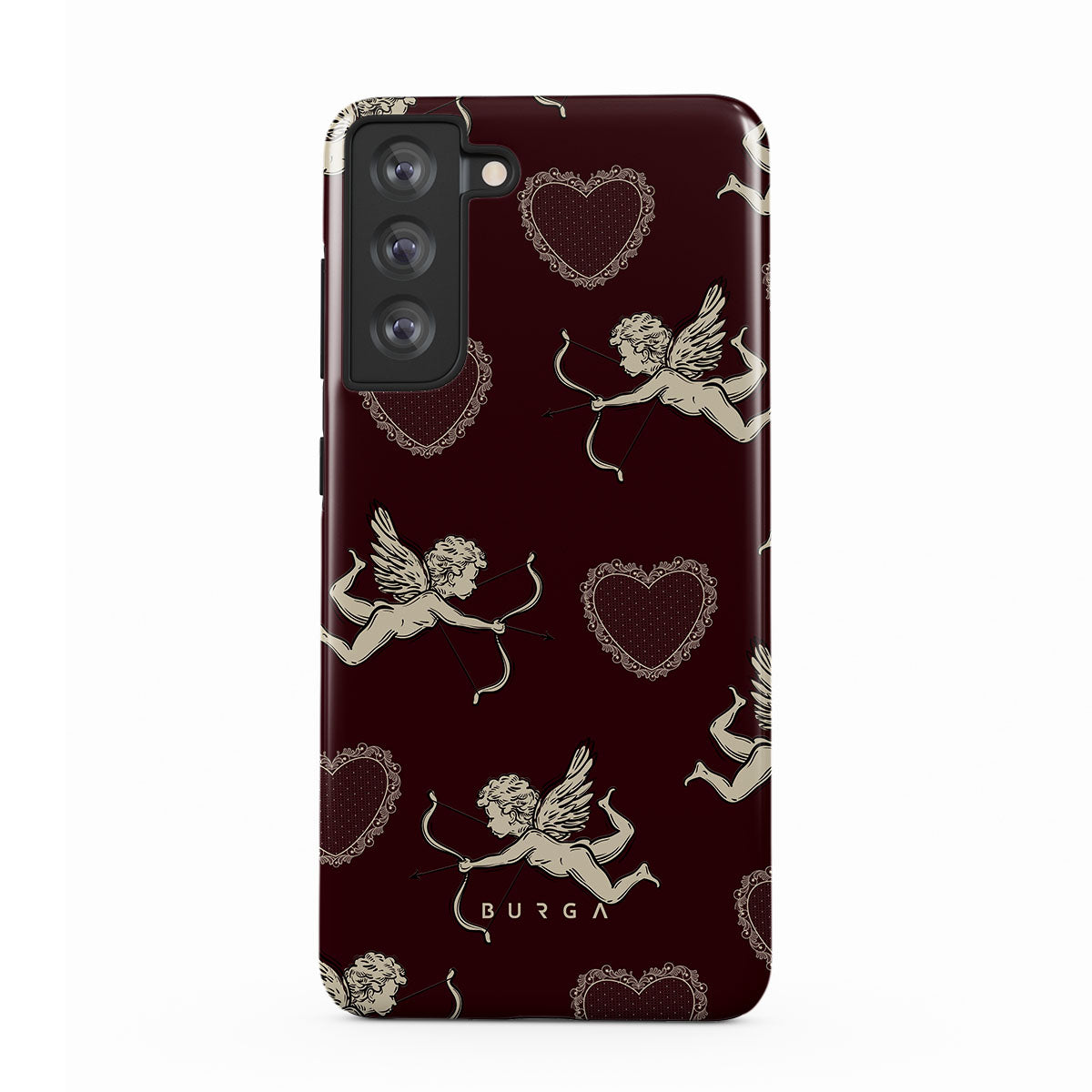このデザインの特徴は、天使、キューピッド、真っ赤なハート、ロマンティックな模様。
