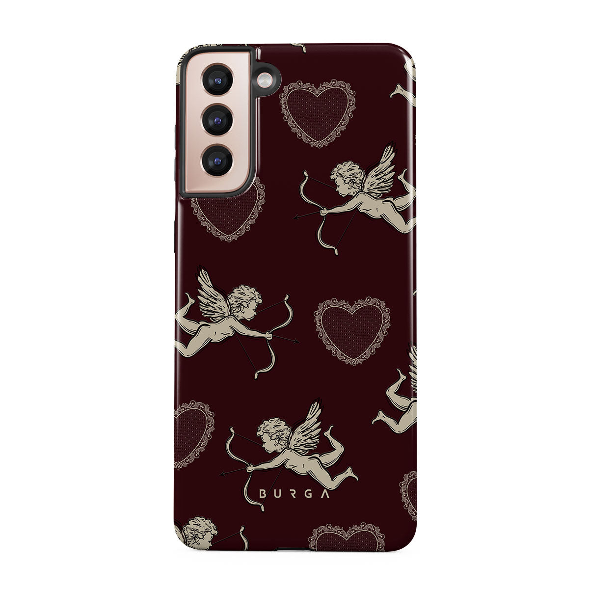 このデザインの特徴は、天使、キューピッド、真っ赤なハート、ロマンティックな模様。
