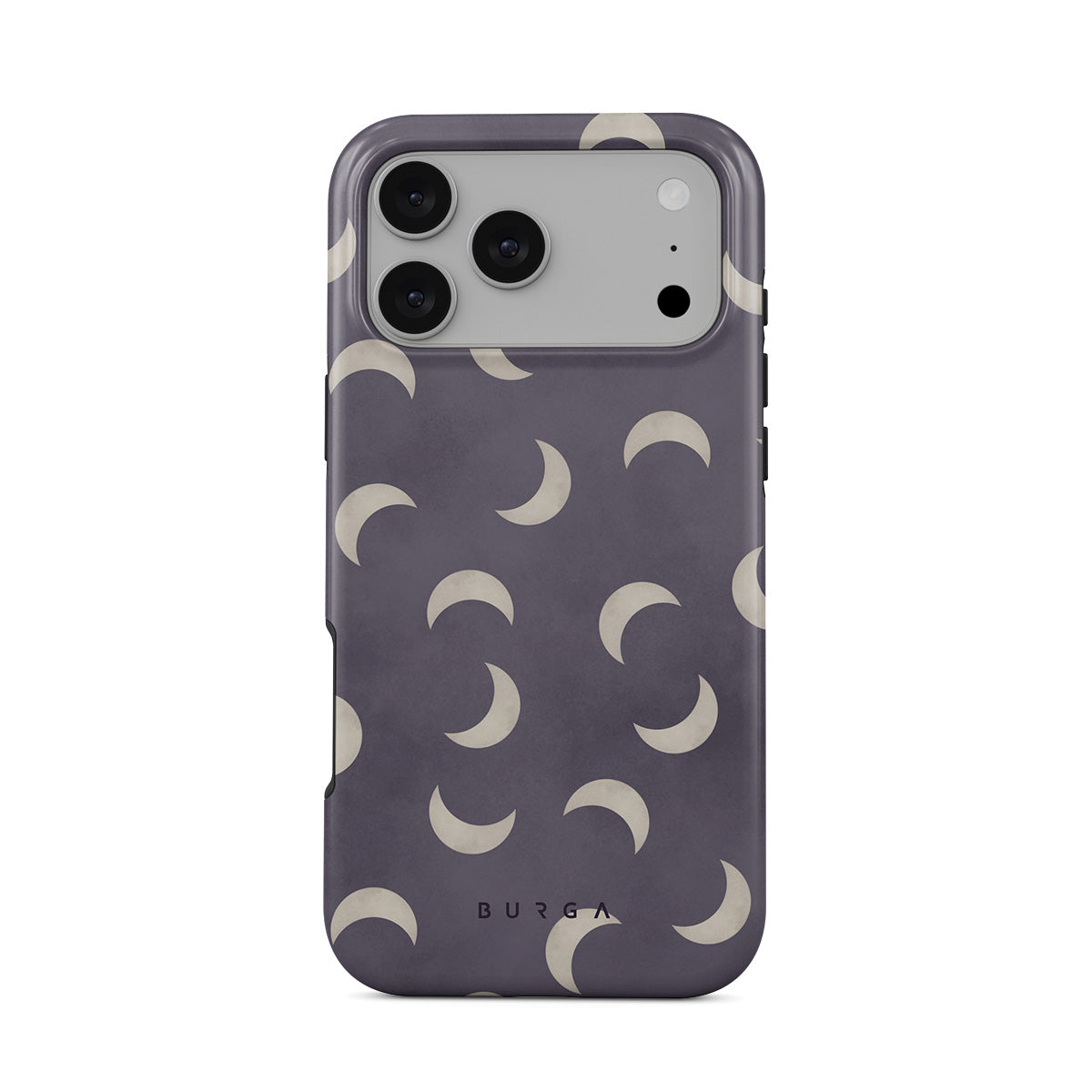 このデザインの特徴:三日月、月の満ち欠け、宇宙エネルギー、月食。
