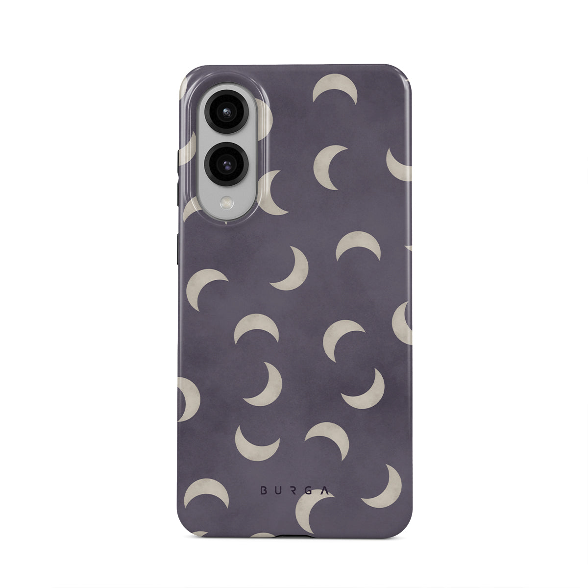 このデザインの特徴:三日月、月の満ち欠け、宇宙エネルギー、月食。