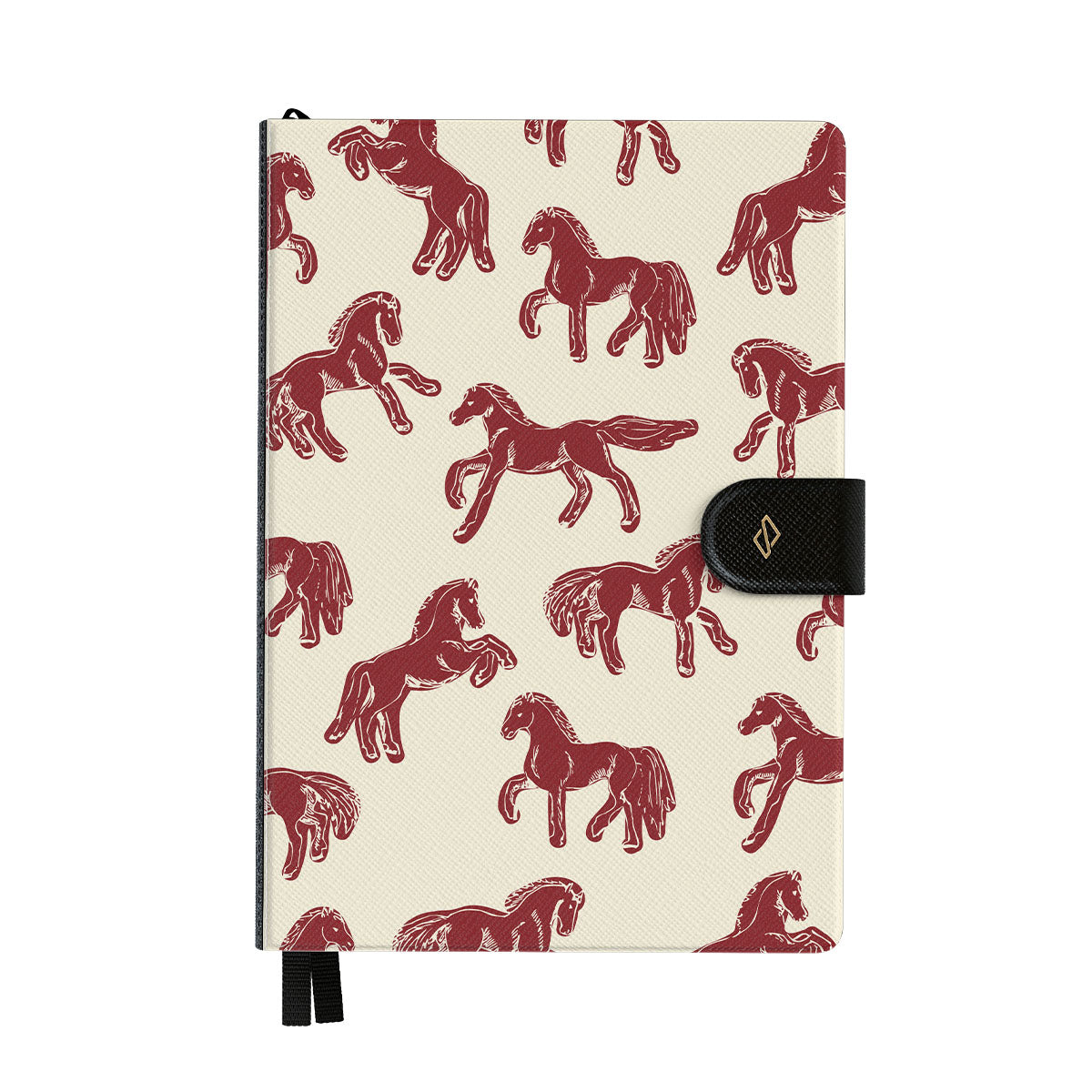 手帳の中身を守るスリムな磁気ベルト付き