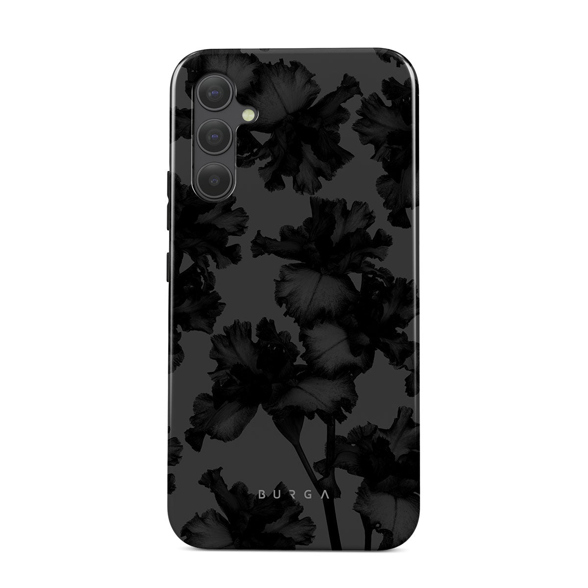 このデザインの特徴は、ダークな花、漆黒のトーン。