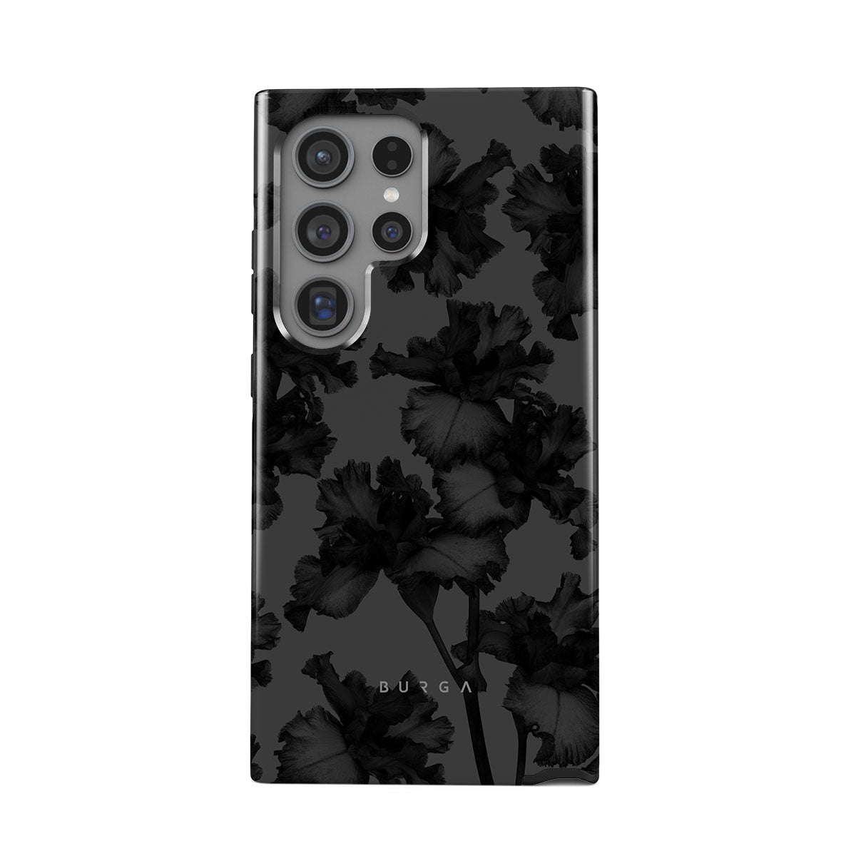 このデザインの特徴は、ダークな花、漆黒のトーン。