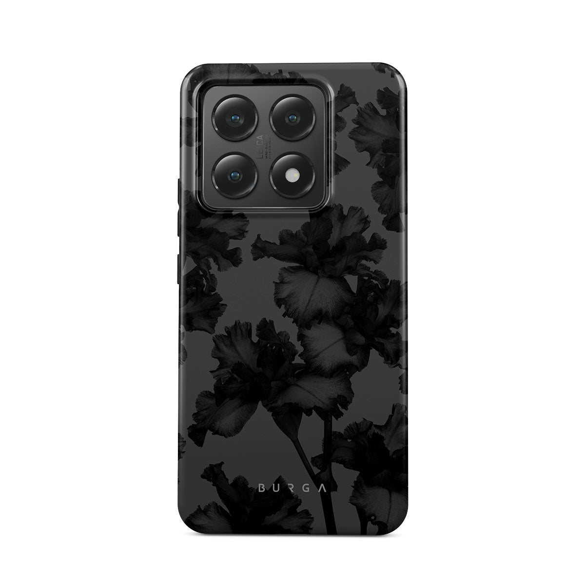 このデザインの特徴は、ダークな花、漆黒のトーン。