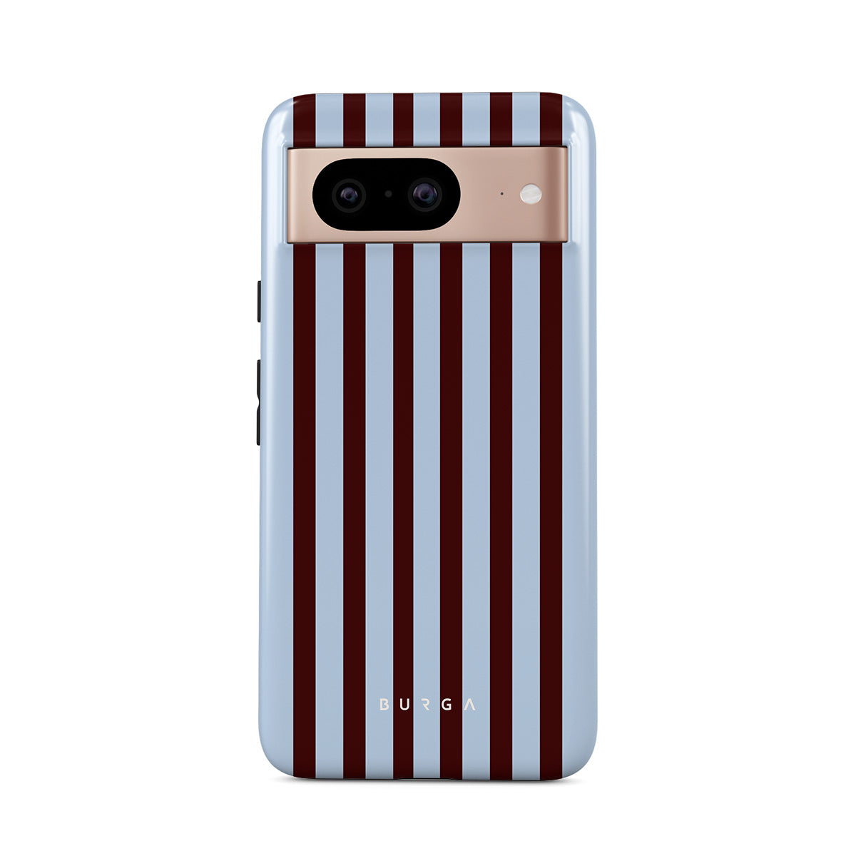 このデザインの特徴:ブラウンとベビーブルーの縦縞が特徴です。