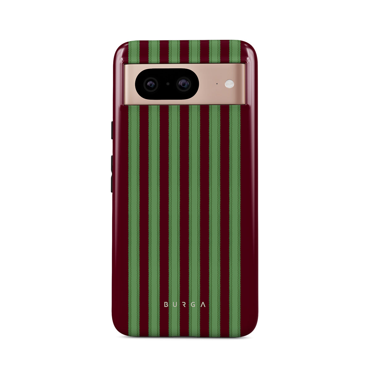 このデザインの特徴:赤と緑の縞模様、縦の縞模様、キャンディケインのパターン、クラシックなクリスマスカラー、大きな縞模様、ペパーミントスティックのデザイン、伝統的な休日の縞模様