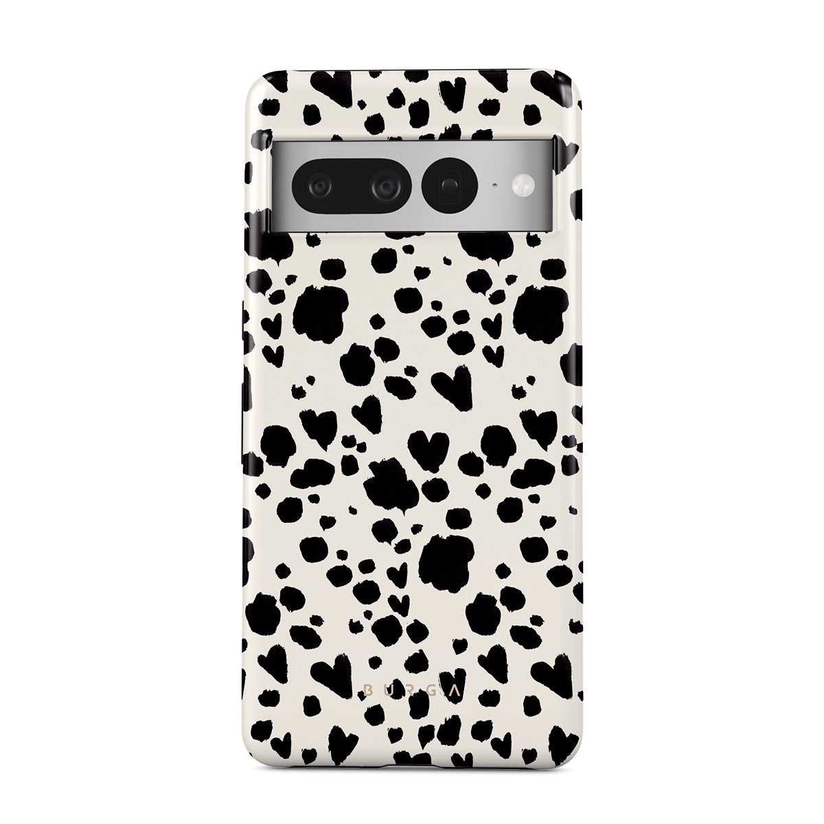 このデザインの特徴:黒と白のダルメシアン柄です。