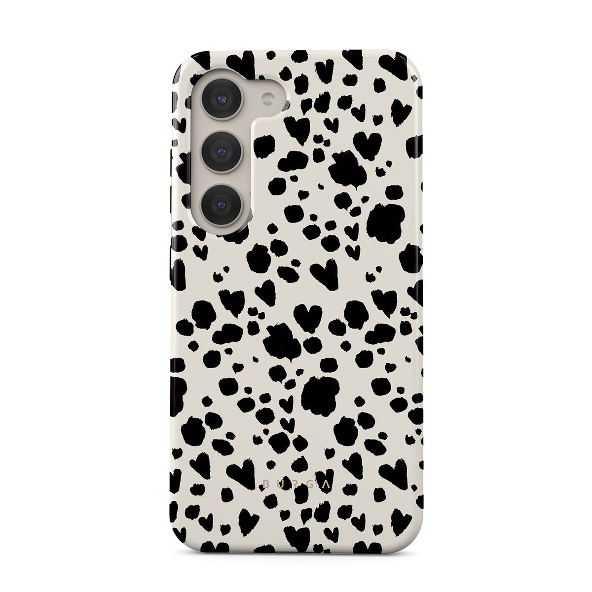 このデザインの特徴:黒と白のダルメシアン柄です。