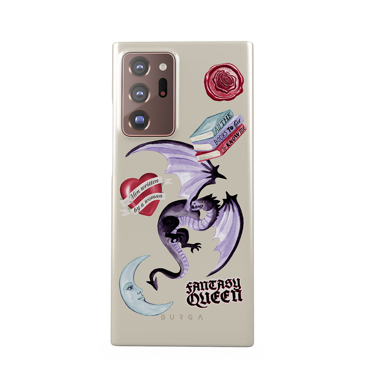 このデザインの特徴:、紫色のドラゴン、「Fantasy Queen」ステッカー、三日月、紫色の封蝋、メッセージ付きのハート、本が含まれています。