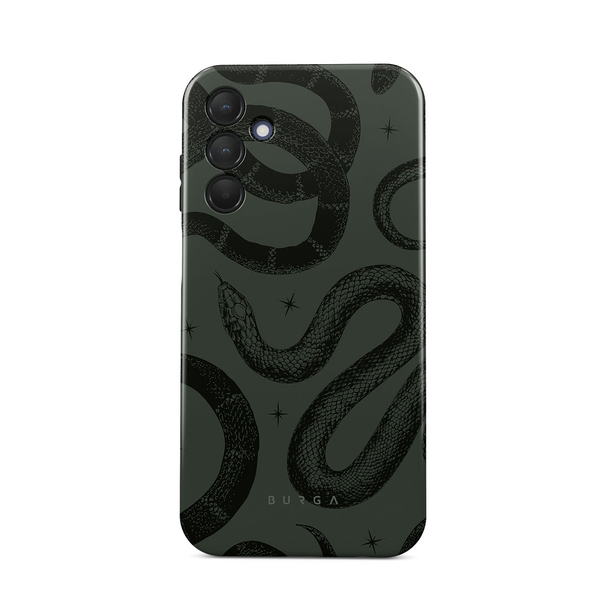 このデザインの特徴:ヘビ、毒蛇、薄暗い緑。