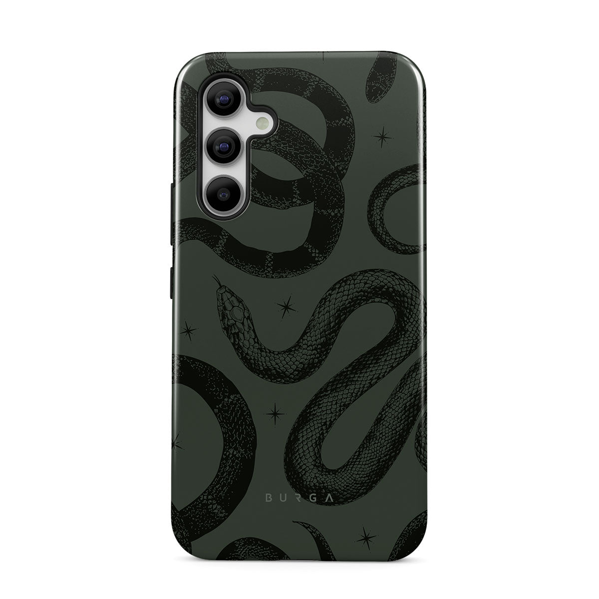 このデザインの特徴:ヘビ、毒蛇、薄暗い緑。