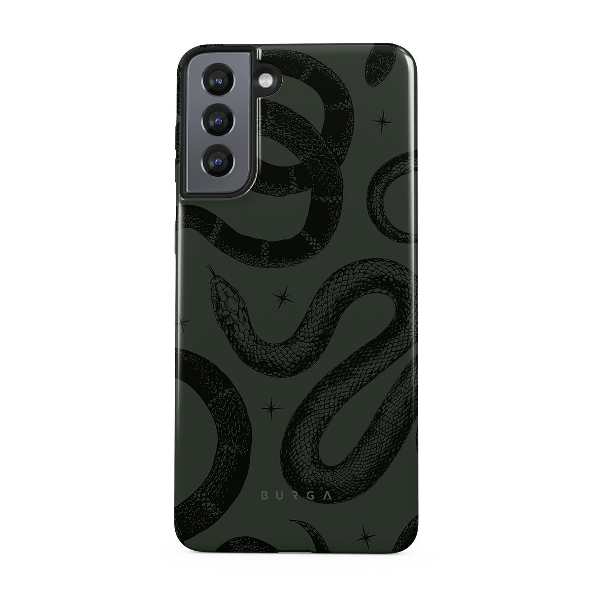 このデザインの特徴:ヘビ、毒蛇、薄暗い緑。