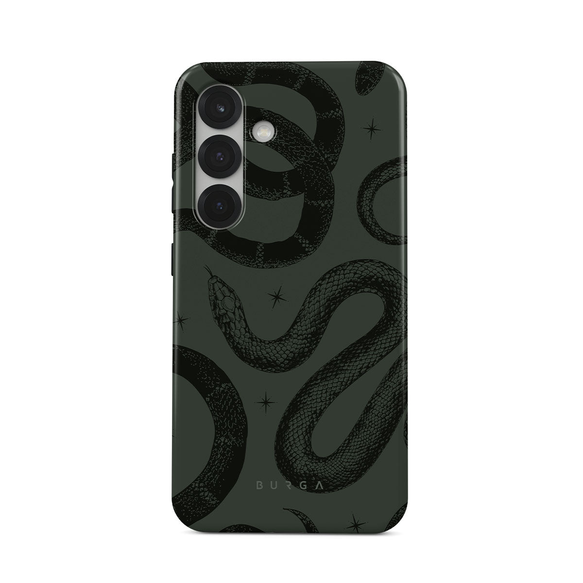 このデザインの特徴:ヘビ、毒蛇、薄暗い緑。