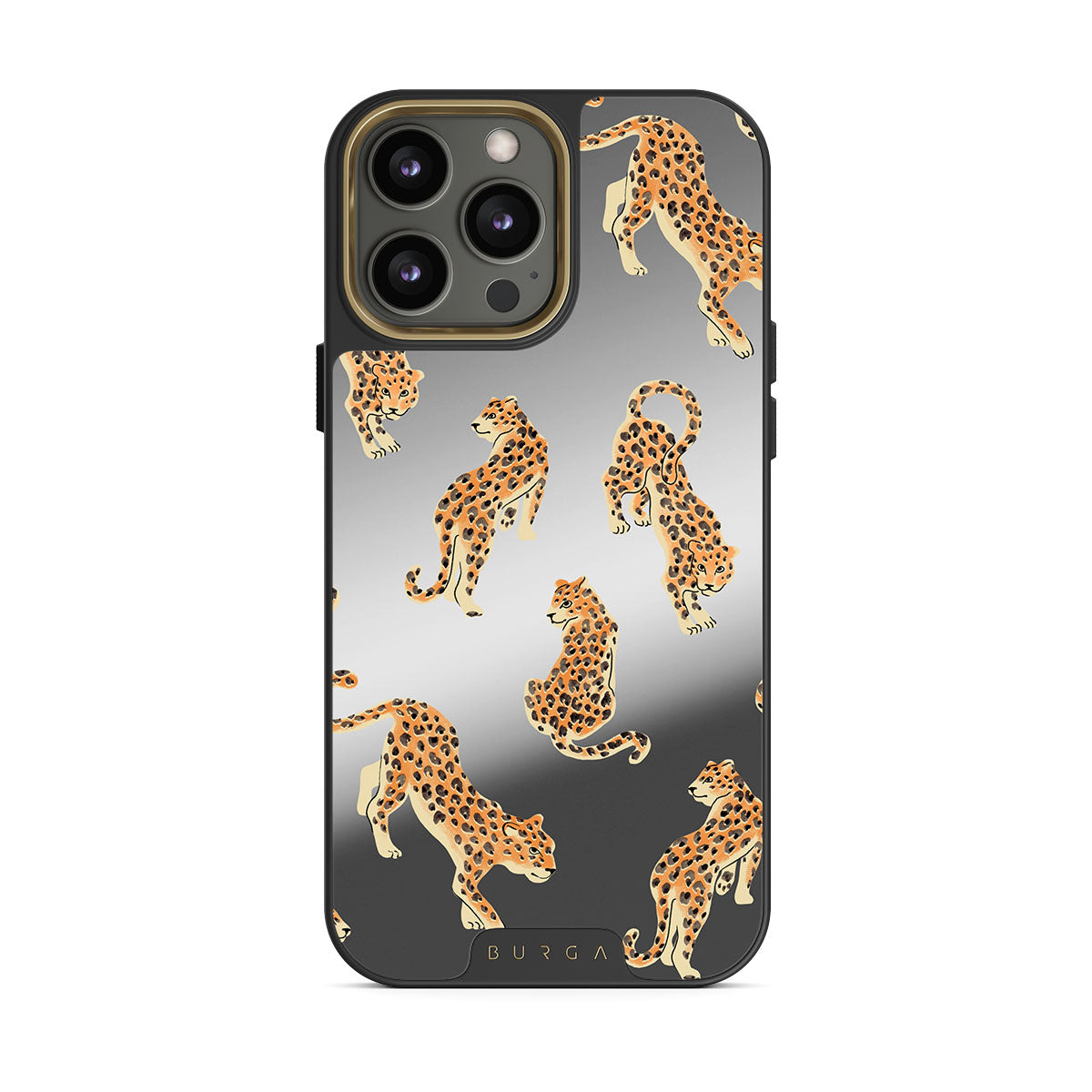 このデザインの特徴ヒョウ、チーター、アニマルプリント、ミラーが含まれています