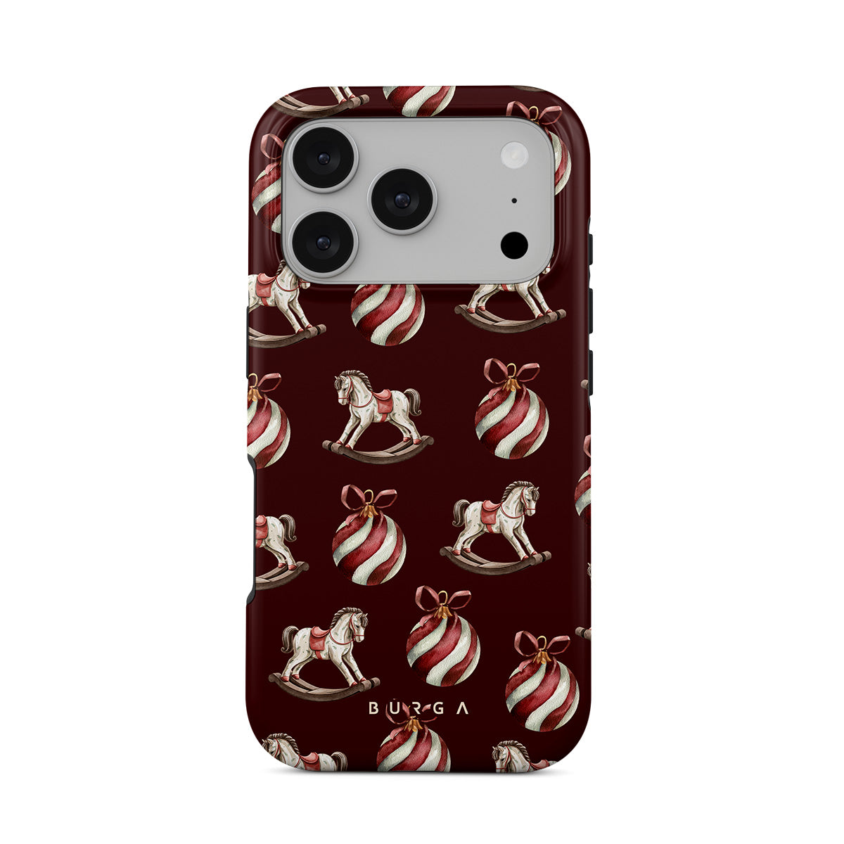 デザインの特徴:揺り木馬、オーナメント、レッド、クリスマス柄