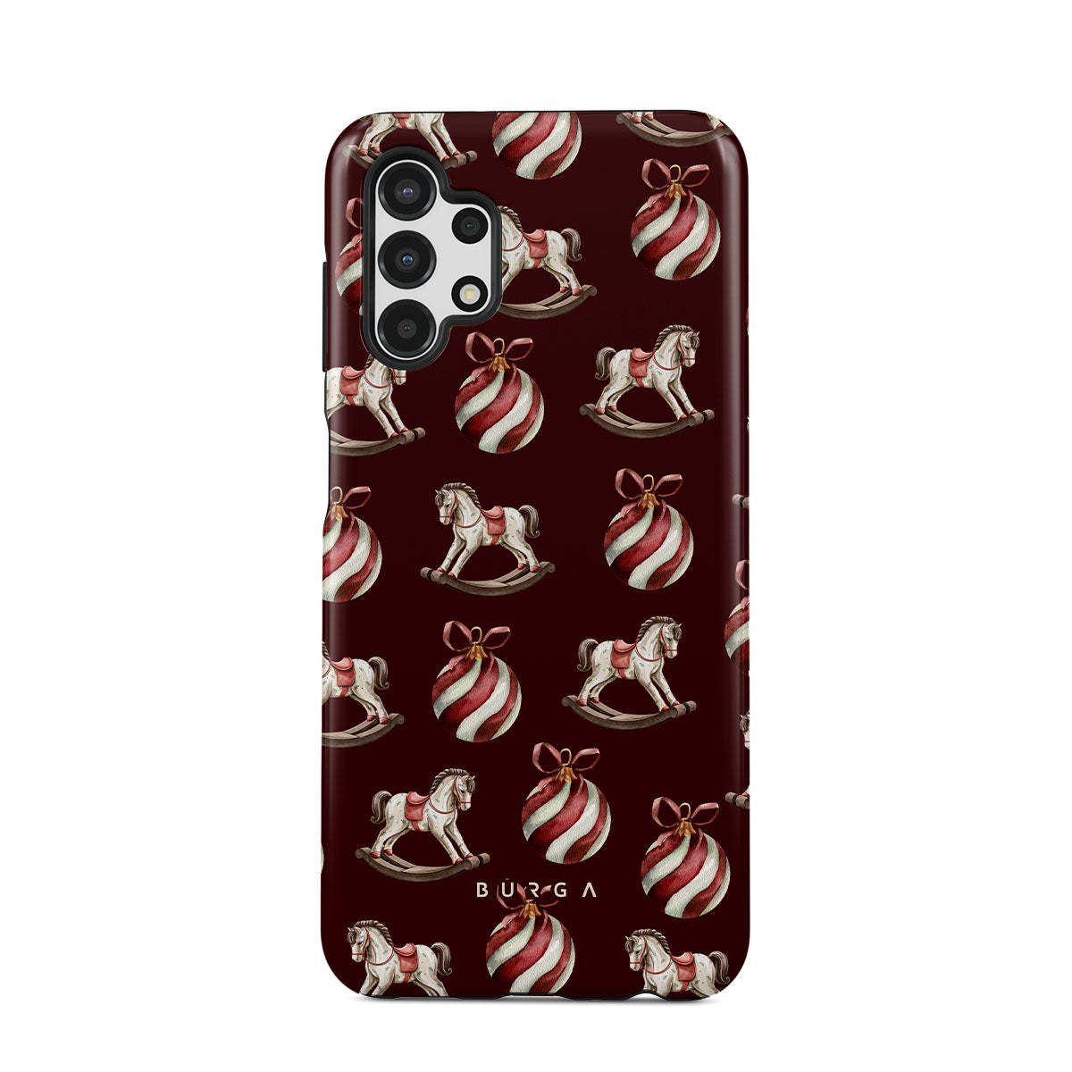デザインの特徴:揺り木馬、オーナメント、レッド、クリスマス柄