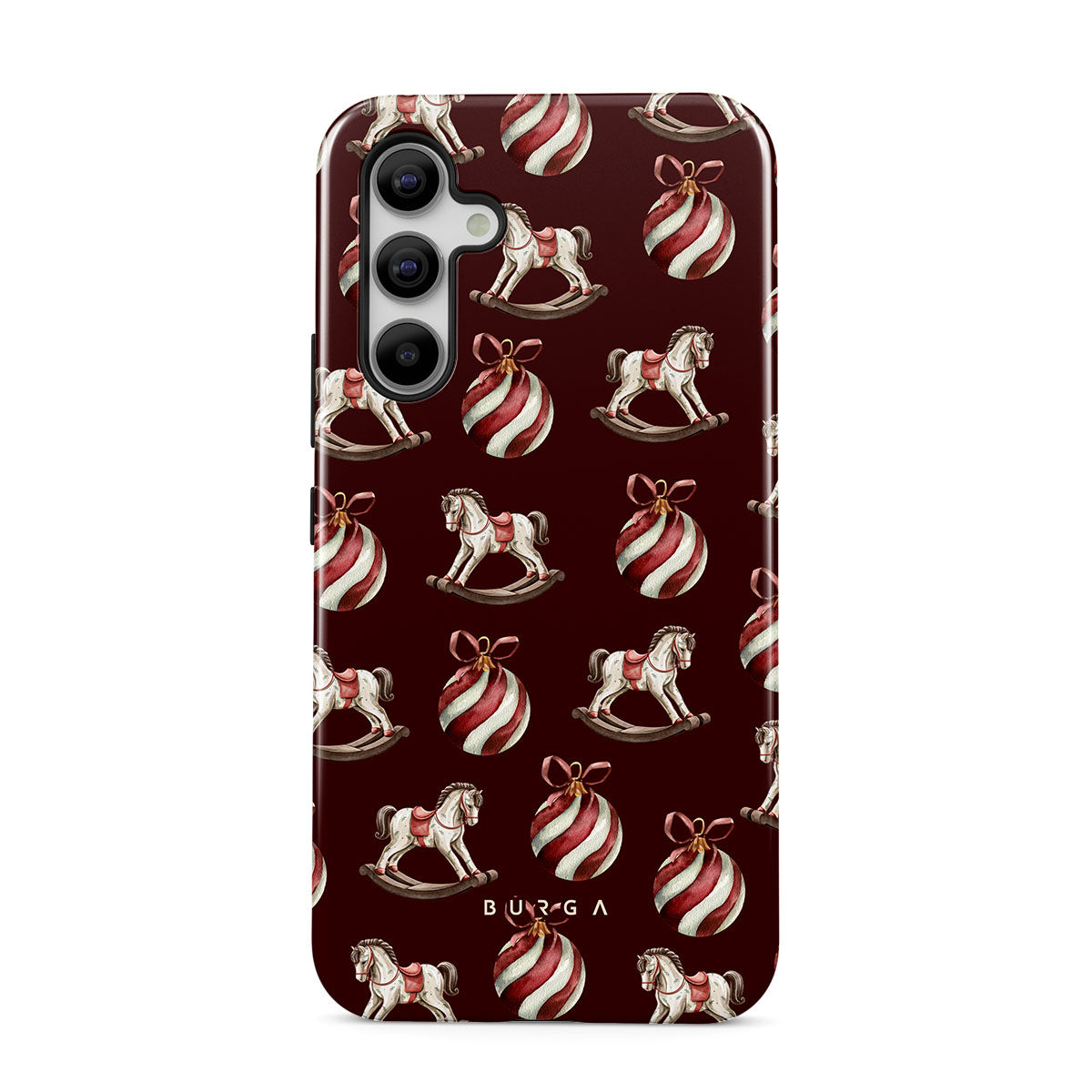 デザインの特徴:揺り木馬、オーナメント、レッド、クリスマス柄